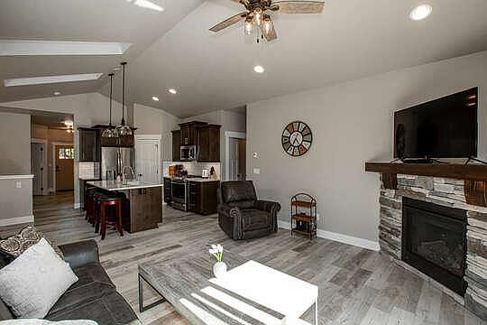 $2500 per month. Available from October 1st 2021 through the end of May 2022. First, last and deposit equal to one months rent required. No smoking. No pets. Fully furnished. Utilities included. You pay for snow removal, cable and internet. Welcome to Meadow Lake golf and winter resort! This town home is privately located in the highly desirable Oakmont loop area. This property sits inside a resort community but does not have access to resort amenities, (Pools and Splash parks) but does have its own separate pool for the neighborhood. The onsite golf course is open to the public and offers advanced tee times. Other amenities include tennis court and a children's playground. **Pool is only open in the summer from Memorial Day weekend thru Labor Day. This residence is the upper level of an up and down town home that was split into two units.This residence is the upper right hand unit and contains two large bedrooms and two full bathrooms. Within the condo you will find it warm and inviting. Warm by the wood fireplace in winter or on cool summer days. For those hot summer days, we have central A/C. The residence flows perfectly with an open concept living room, dinning area and kitchen. This unit is all located on the main level. A large deck off the living room is perfect for entertaining. The residence includes wood flooring in the living room, stainless steel appliances, tiled bathroom floors, vaulted ceilings, granite counters and a gas fireplace. The living room has a large flatscreen with cable. Wifi is provided as well. You will have full access to the garage from this unit as well. $2500 per month. Available from October 1st 2021 through the end of May 2022. First, last and deposit equal to one months rent required. No smoking. No pets. Fully furnished. Utilities included. You pay for snow removal, cable and internet.