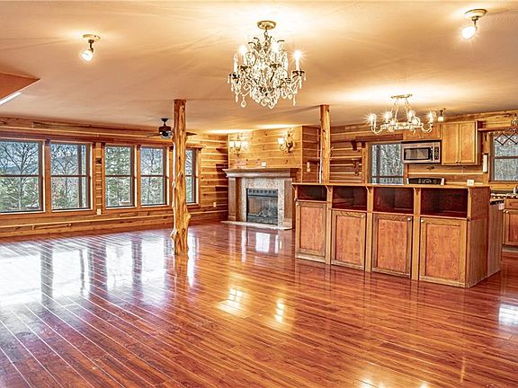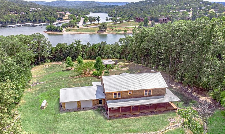 TABLE ROCK LAKE FRONT PROPERTY! Custom built log home sitting on a little over 3 acres, beautifully landscaped with pergola and firepit. Inside won't disappoint - open floor plan, tons of built -ins, custom details throughout - mosaic tile shower, and beautiful oak trim, walls, and floor throughout home. Entertain upstairs with a built-in wet bar, bonus room, 2 bedrooms + bathroom. Enjoy the gorgeous view from almost every room. Master suite won't disappoint - mosaic tile shower, 2 person jetted tub with 26 jets, double vanity, and access to the deck. Relax on the back decks enjoying the gorgeous view this home has to offer! Welcome home!