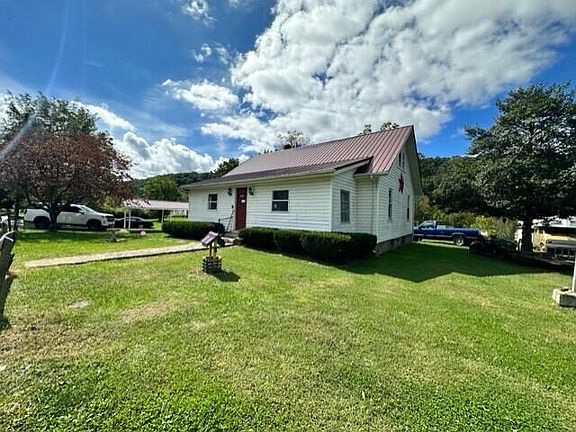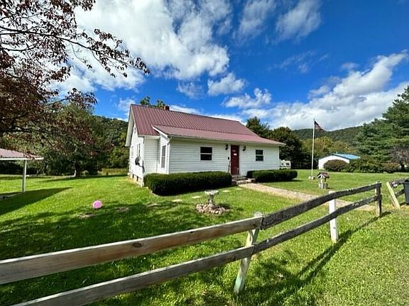 1 1/2 story vinyl sided home with full size basement situated just outside of town limits. 2.87 level acres adjoining the Rich Creek on the backside of the property. Level and fairly open grounds with 1 car carport and storage building. Lot beside the home has utilities already available, so potential for another homesite. Inside the home provides 3 bedrooms, 2 baths, hardwood floors, natural gas furnace and central air conditioning. Laundry room off the kitchen. This property has potential for a new homeowner and possibility of income producing. Call for more information.