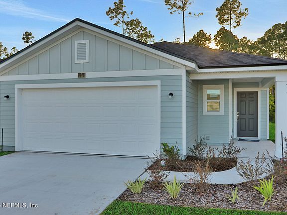 Welcome to Cordova Palms Community in St Johns County! Low CDD & HOA Fees. Amazing amenities, Clubhouse, Gym, Pool, Playground, Pickle Ball, Dog Park. Lot 265. Natural Gas Community! The Charming Award Winning beautifully designed Ansley floor plan. The inviting layout features a spacious living area w/vaulted ceiling, filled w/natural light, perfect for entertaining! The 3 Bedroom w/2 baths, 2 car garage, 1864 sf. The well-appointed kitchen seamlessly flows into the dining area, making family gatherings a breeze. The oversized owner's bathroom suite & tile walk in shower, (2) spacious master suite closet with dual quartz vanity sinks. Also boasts raised vanities in all baths including quartz countertops, Includes 42'' gray kitchen cabinets, Quartz countertops, double gas range oven w/microwave, luxury laminate flooring in all main area, window blinds, tankless water heater, recess lights in kitchen and family room, Full sod and Irrigations, Pre-plumb water softener, pre-wire lights above the kitchen counter for future chandleries. Covered lanai includes natural gas stub. With a 2-car garage and a lovely, wooded backyard, this home is ideal for comfortable living. Don't miss out on this gem! Includes 1 GIG of Internet. Once again proving that Dream Finders Homes offers the best value at every price point. Seller Pays Closing Costs using our preferred lender.Please schedule your model tour today!! Ready Now!