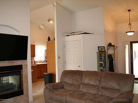 This ranch style home is located in the Monument Creek Village in Battlement Mesa, Colorado. The open living, dining and kitchen are accented with vaulted ceilings and separated by the double-sided gas fireplace. The well designed kitchen boasts plenty of counter and cabinet space with a breakfast bar. The home has 3 bedroom and 2 full baths. Master suite has a walk-in jetted tub. Access the fully fenced back yard featuring mature landscaping, an afternoon friendly patio accented with decorative tile, perfect for entertaining. The fence was just painted and a new roof was applied in June. The home was built by a premier builder in 1996.
