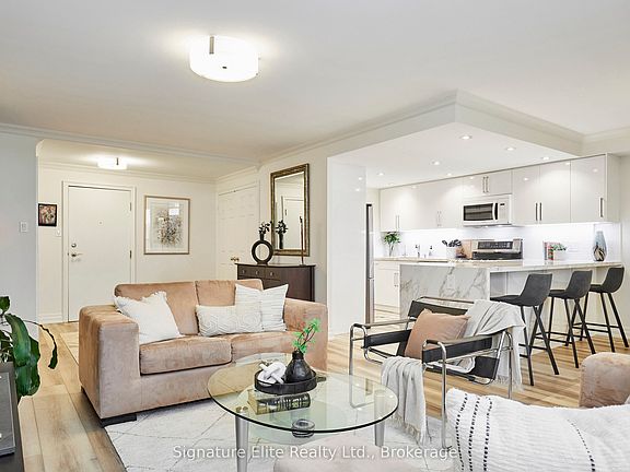 Completely reimagined and redesigned, this bright 1,300+ sqft suite delivers effortless luxury in one of Toronto's most prestigious addresses. Flooded with natural light, every detail has been thoughtfully upgraded for comfort, style, and peace of mind. Enjoy stress-free living with all-inclusive maintenance fees and a brand-new alarm system. Inside, discover top-of-the-line cushioned vinyl flooring, a 2022 waterfall porcelain countertop, and a sleek coffee bar that ties the modern design together. The chef-inspired kitchen features premium appliances - Samsung fridge (2023), LG stove (2023), Samsung microwave, Bosch dishwasher, Miele washer & dryer, garbage disposal, and a reverse-osmosis water system with instant hot. Elegant pot lights, flat ceilings, and crown moulding add warmth and sophistication throughout. Electric blinds, insulated windows, and under-cabinet lighting enhance comfort and efficiency, while a spacious walk-in pantry and ample storage make this condo truly feel like home. The primary suite is a serene retreat with his-and-hers closets, an additional walk-in, retractable ceiling fan, and a double-sink ensuite - the perfect blend of luxury and everyday ease. Steps from Avenue Road and the exclusive Cricket Club, with quick access to Highway 401 and public transit, this location truly has it all. As a resident, you'll enjoy resort-style amenities including a fully equipped fitness centre, sparkling outdoor pool, and lounge area, billiards room, 24/7 concierge service, and ample visitor parking. The craftsmanship, flow, and finishes come together in a way photos can't capture. Stop reading - come experience Suite 508 in person and let it do the talking.