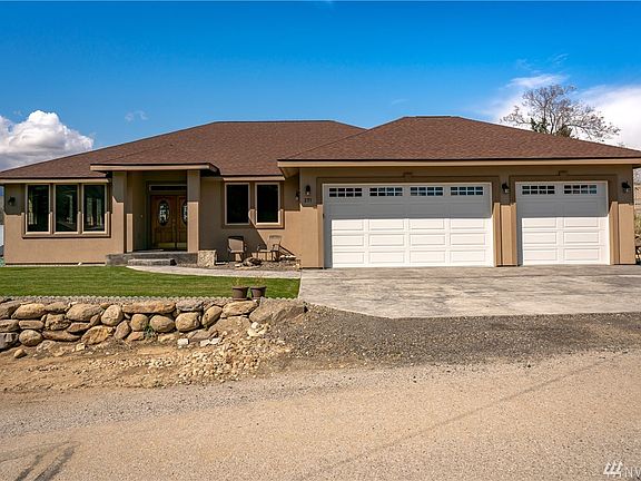 Rambler with gorgeous finishes. Wood French doors enter to living room with electric fireplace. Expansive open floor plan with natural light and dark hardwood flooring and cabinetry. Kitchen with stainless steel appliances and island with bar seating. Double vanities in each bath. Laundry and utility room off garage entrance. Low maintenance backyard for entertaining with 14'x25' covered patio, views and fire pit. 3 car garage for parking and storage w/ space for small RV/boat parking on side.