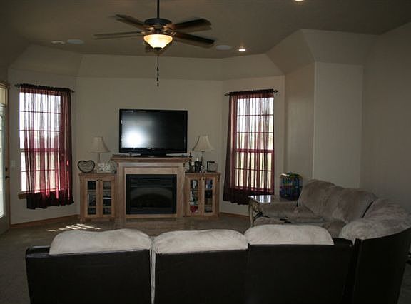A red front door and beautifully tiled entry are only the beginning of this attractive home, with over 2100 sq ft of living space, located in the Deyo Landing Addition in the highly desirable Cache School District. Enjoy dinner with the family and friends in the lovely formal dining room just off the main entry, with its wood laminate flooring, angled walls, full length windows and beautiful wood detailing with an attached butlers pantry. The kitchen is adorned with beautiful staggered raised panel maple cabinets that are finished in a natural stain and decorative crown molding. The counter tops are granite with 2 breakfast bars, and upgraded stainless steel appliance package comes complete with a smooth top stove, microwave, vent hood and dishwasher. There is also a full sized pantry with an etched glass door. The large living room has custom built-ins with an electric fireplace, surround sound capabilities, and is open to the kitchen, which is great for entertaining. The master suite is spacious and has panned ceilings and a large private bath with a whirlpool tub, separate shower with tumbled stone tile, double sinks, bronze fixtures, granite counter tops, and his and her closets with built-ins. There is an oversized 2 car garage and plenty of storage space throughout the home. All this and more setting on a 1 acres lot.