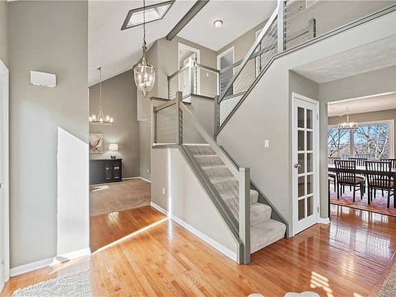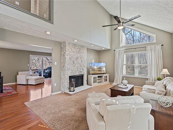 This stunning 5BR 4BA contemporary home is situated on 2.5 acres of picturesque wooded land. Fresh paint enhances the beauty of the two-story vaulted ceilings flooded with natural light. The living space is centered around a striking two-sided stone fireplace, creating a warm and welcoming ambiance. The updated kitchen features granite countertops, new recessed lighting and SS appliances. A convenient first-floor bedroom with an en suite provides a private retreat for guests or family members. The large master ensuite offers a cozy wood fireplace, updated bath with a double vanity, and a spa-like atmosphere. The finished basement is an entertainer's dream, complete with a spacious game room, a full kitchen ideal for an in-law suite, a separate gym, and an additional bedroom. Savor the summer on the expansive private deck where you can take in wooded views while the kids play freely. Conveniently located near shopping, restaurants, parks and just min to the Pitt Int'l Airport!