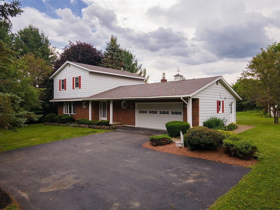 Welcome to this lovely 3 bedroom, 3 full bath Colonial on 7.5 acre private setting. 2-car garage, 3 season room with sliding glass doors, new balcony deck off master bedroom, newer furnace, central air, security system, 7-year old roof, automatic Generac propane generator, and a beautiful view of the valley. This property also features a pond and fruit trees. Room for horses or a pool. 5 minutes from the Thruway.