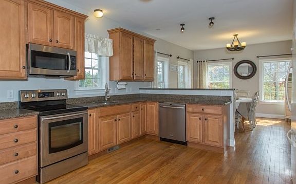 Beautifully appointed waterfront with unobstructed views! Enjoy year round activities, boating,fishing, swimming, skating, kayaking,snowmobiling all on Arlington Pond with the conveniences of home. Large landscaped lot with private boat dock, stone wall, patio . Features include Eat-In Kitchen with Maple Cabinets, New Granite Counters, Two Tiered Peninsula, Nine Foot Ceilings and Hardwood. Second Floor Master Suite with Private Bath and 2 walk-in closets, guest bathroom with laundry and 2 additional bedrooms, Future expansion possibilities on the walk up third floor. Plus a finished walk-out lower level, perfect for entertaining. Waterfront at its finest !