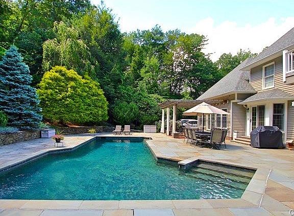Beautiful large colonial on manicured lot with mature plantings and gorgeous outdoor living area with stunning pool and patio. Top of the line renovated eat in kitchen with all the bells and whistles open to sunlit family room with bar and walls of glass. The working side of the kitchen opens to a 2nd family room with fireplace. Access the outdoor living space from all 3 rooms. Vacation at home in your own mini paradise! Luxurious master suite with fireplace, 2 walk-in closets, updated bath, and balcony overlooking pool and yard. 3 additional large bedrooms, each with access to an updated bath. New hardwood floors on second floor are sure to please. Large study with built-in bookcases, bright dining room with beautiful windows, exercise room & playroom. Have it all on sought after south Wilton street.