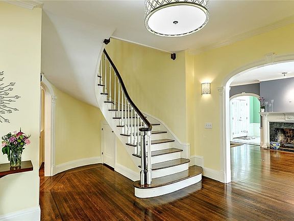 This amazing brick Georgian located in Freeman Plat is sure to be a crowd pleaser. Step into the front entry foyer with warm wood floors which extend throughout the house. Rich architectural details abound with graceful archways flanked by ornately carved woodwork and lovely leaded glass windows. The grand living room has a fireplace with an elegant mantle with Grecian Columns. A sunroom steps out to a lovely backyard complete with a blue stone patio and a full outdoor kitchen - the prefect backdrop for summer entertaining. Back inside, the gracious details continue in the formal dining room currently used as a family room off the large eat-in kitchen with stone counters and professional grade appliances. Upstairs the oversized primary suite has a spa like bath with jet tub, double vanity and a glass enclosed shower. A walk-in closet provides ample storage and a convenient study allows for undisturbed workspace. Two additional bedrooms with a Jack and Jill bath, plus an Au Pair suite and laundry complete the second floor. Up another flight of stairs a private guest suite with a full bath and sitting area allows ample space for visiting family and friends. The lower level has a recreation room, home gym and wine cellar. This stunning home is set in the desirable Freeman Plat neighborhood which boasts elegant homes on tree lined streets with manicured lawns, yet an easy walk or bike ride the city's public and private schools. Be home in time for Labor Day!