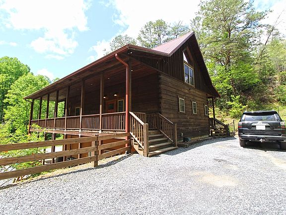 Beautiful three level log cabin located just outside of Bryson City in a quiet, peaceful location. Cabin is extremely spacious with multiple living areas. The main floor features a huge living space with rocked fire place, vaulted ceilings, ample windows for natural light, and tongue and groove throughout. The open kitchen features granite counter tops and stainless appliances. There is a massive covered deck on the main level which adds for plenty of outdoor relaxing. The spacious master suite is located on the main floor with features a private porch, ample closet space, and beautiful master bath with soaking tub, tiles, walk-in shower, and double sink vanity. Nice laundry/mud room is located just off the main entrance with utility sink and half bath. Upstairs is an open loft, perfect for additional living area, office, game room, or sleeping space, plus a full bath with shower. Downstairs there is a massive additional living area, two additional large bedrooms with walk-in closets, as well as two full baths with tub/showers. Cabin is privately located with nice usable land. Excellent rental history on Airbnb and VRBO. Approximately 2 acres TBD following a survey.