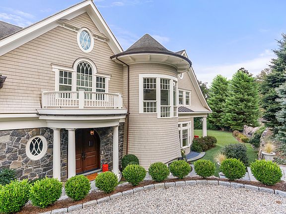 Water views like no other home in Cos Cob! This meticulously maintained imperial home is from a fairytale with its curved turret staircases, arches and rounded features. Rustic modern luxury is the theme as you step into a grand foyer. Majestic master wing with dual walk in closets, sitting area, & an awe-inspiring spa. 5 ensuite bedrooms. Custom kitchen with oversized island, breakfast nook with bay window and French doors to multi-level slate patio. Fantastic functionality with laundry on 1st and 2nd floors and spacious mudroom. Supreme lower level with 1 of 5 fireplaces, yoga room, and 1,532 square feet of additional space with gym & basketball court. Walk out lower level to water view patio with built in grill, boat house, and tool shed. Transport yourself to this pristine castle on the river.