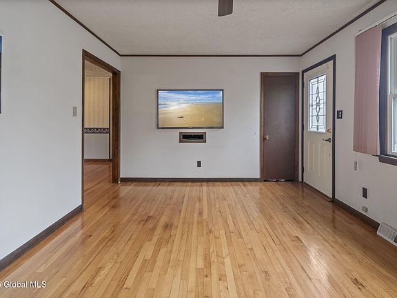 Here is your chance to own a spacious Split ranch in the heart of Colonie with Nisky mailing. This 3+ BR 1 bath home features 2 beds and 1 full bath on 1st flr with huge 3rd bedroom on 2nd floor. Formal LR has HW flrs and built in shelving. Eat in kitchen with breakfast area leads out sliders to large 3 season room overlooking deck, shed, and great yard. Full fin dry basement with bar and plenty of storage. Move in ready condition and low taxes.