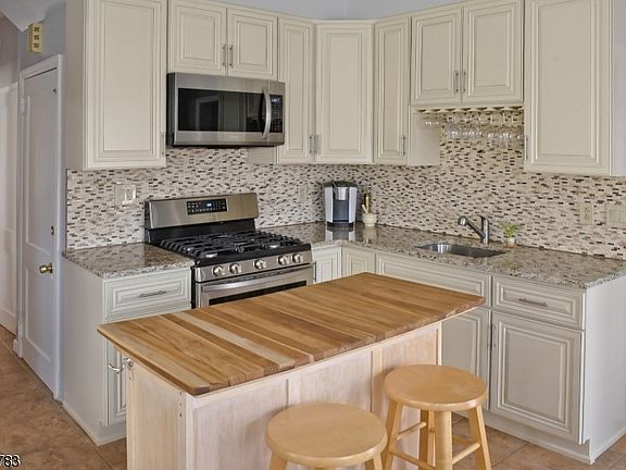 Excellent opportunity to own a lovely 5 bedroom 3 full bath colonial in Rockaway! Walk right into the sun porch filled with tons of natural light. Open concept brand new kitchen with granite countertops, mosaic mesh backsplash, SS range and dishwasher; overlooking the large backyard & leading right to the living room. French doors leading into the formal dining room with crown moldings & high ceilings. 1st floor bedroom could also be used as an office. 3 bedrooms upstairs. Finished basement with a bedroom & full bath. Enjoy the deck & huge fenced in yard, 2 driveways, as well as oversized HEATED detached 2 car garage: 12 ft ceiling, 10x10 garage doors. Whole house generator hookup. Convenient location in downtown Rockaway Boro close to 46, 80, shopping, train & bus.