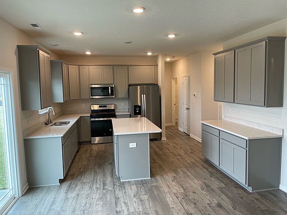 Welcome to the Campton in Saddlebrook Farms! This sprawling Whiteland, Indiana home features 5 bedrooms, 3 full baths, den, loft and 3 car garage. Main level bedroom and adjacent full bath is perfect for guests or multi-gen living. Kitchen features beautiful 42" cabinets, quartz countertops, durable laminate flooring, pantry and more. Primary bedroom suite is massive and offers double bowl vanity, garden tub, separate shower and two walk-in closets. The home includes America's Smart Home Technology featuring a smart video doorbell, smart Honeywell thermostat, Amazon Echo Pop, smart door lock and Deako light switches. Take some time out to enjoy the community walking trails and the serene fountain at upcoming Town Park. This ideal location offers the peacefulness of a small town and the convenience of living near major roads, shopping, dining and entertainment.