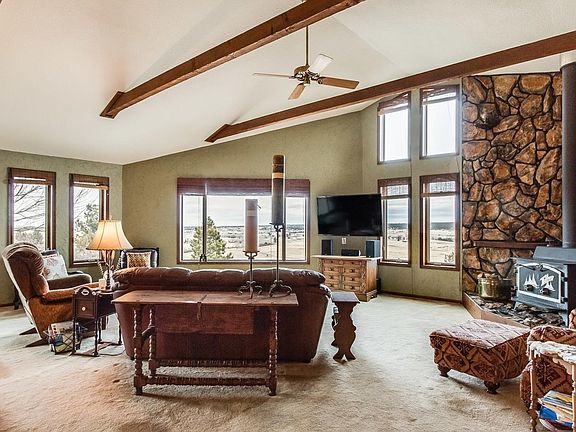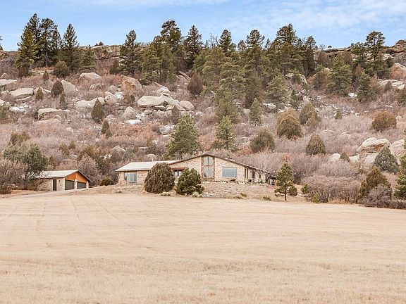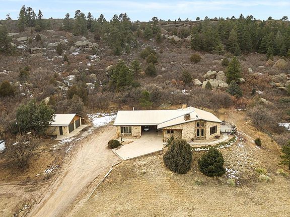 Location, location, location. Once in a lifetime opportunity to own a property adjoining Castlewood Canyon State Park. The views of the countryside are amazing, beautiful rock outcroppings and treed area behind the house, this property has so much character plus great meadow/pasture for horses. This house is perfect for entertaining with open great room/kitchen/dining room combination, large bar area. Brand new Pella windows (30K) and new metal roofs, new paint and stain. Outbuildings also have new roofs. Quality brick construction. Tons of windows to soak in the incredible views. Large deck off the kitchen to sit and relax. Property has both a fireplace and wood stove. Large covered entry that can accommodate golf/utility cart, outdoor furniture and more. Detached garage and barn/workshop are both 30' x 30'. There are 14 fruit trees on property. Hard to find a great 10 acre parcel such as this. HOA is voluntary. Walk or hike right into the park.