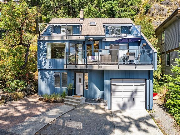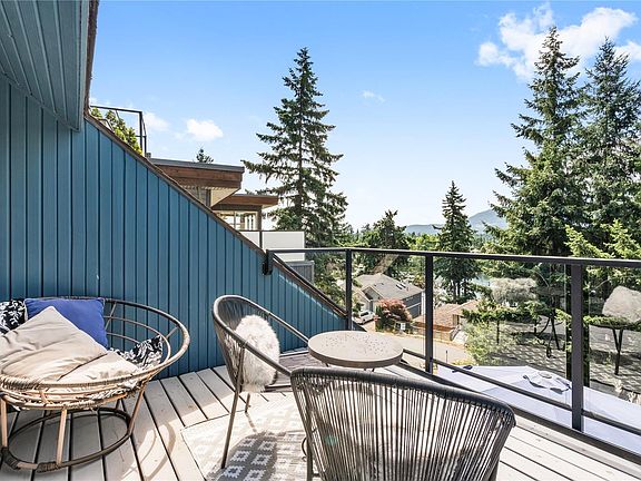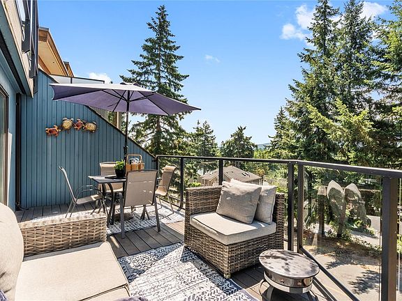 This beautifully designed unique home offers views of Long Lake and a layout that blends functionality with West Coast charm. On the main level is an open-concept living space with hardwood flooring, a kitchen equipped with stainless appliances, and living room with access to the main deck. The primary bedroom also opens onto the deck and features a walk-in closet and three-piece ensuite. A curved custom staircase leads to the upper floor, where two bedrooms each enjoy their own private deck and share a four-piece bathroom. Soak up the southern exposure and lake views from multiple vantage points or retreat to the private back deck surrounded by lush natural landscaping. Enjoy built-in benches, a firepit area, and a hot tub. In the Fall, enjoy the serene beauty of the changing leaves and peaceful moments kayaking on the lake, accessible just steps away via a private community entrance. All data & measurements are approximate and must be verified if fundamental.