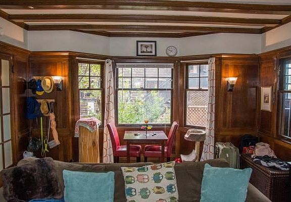 This apartment can be set up as a one bedroom with a living room, or as a 2 bedroom (without a separate living room), as it was for a few years, with 2-3 students living in it. You will be charmed by the warmth of this Elmwood Apartment with newly updated kitchen, dishwasher, washer-dryer, refinished hardwood floor, original wood paneled living room, breakfast nook in the kitchen, and the greenery outside the large south-facing windows. Walk 5 blocks to campus, 2 blocks to elmwood restaurants and shops. Located on one of Berkeley's most beautiful streets, near college and ashby. this comfortable ground-floor apartment is one of three in this classic wood shingle house. It shares a large backyard full of flowers, oaks, and a redwood. Ideal for 1- 3 people. Pets negotiable, but not preferred. Residential parking permit available. Your neighbors in the triplex will be 2 families with children, and a medium-small dog. Available now. I'm looking for a year long lease, but I'm somewhat flexible. If you have a dog, please let me know what type (M,F, size, breed)- your dog will have to get along with mine, and be good with small children if it is to share the fenced yard. If you email, please leave your phone number, I won't respond without a phone number, due to craigslist spammers. Thanks. First, Last, and $2000 security deposit to move in. Please have past landlord references and proof of financial responsibility. A note about the photos: They are from several different tenancies - so you see the same rooms looking somewhat different. There are 4 main rooms: 1. Kitchen/dining - with the white walls 2. Hallway to the bathroom 3. Bedroom - Carpeted, with the big wall of wooden framed windows 4. Big Front Room - usually set as a living room, with space for a table or desk - the one with hardwood floors Thank you Owner pays water and garbage, tenant pays PGE