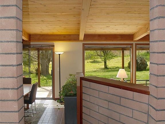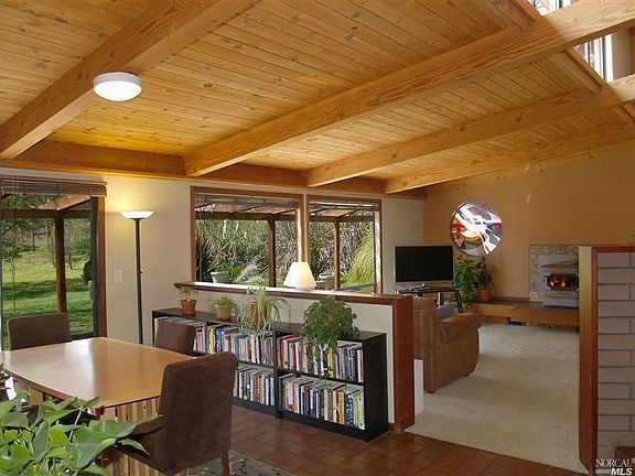 Contemporary passive solar home in private country setting. With an open floor plan this single level home features vaulted wood beam ceilings, tile flooring, wood burning stove and unique stained glass window. Master bedroom has its own private deck and recently updated bath. Entire back of home looks to a private patio with peaceful views. Established landscaping around the home and separate fenced garden area with raised beds and garden shed.