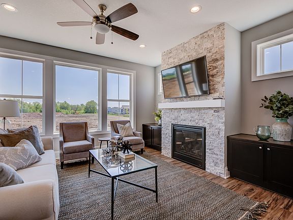 Main level living! Open, bright & cozy, this floor plan has natural light flooding in with all of the large windows. Quality details, thoughtful design & beautiful finishing touches; 2 bed, 2 bath, 2+ car garage w/ tandem push back for additional storage. Optional tray vault ceiling at spacious master bedroom. Custom built cabinets, SS appliances, oversized center island, granite or quartz tops, 9' ceilings, gas fireplace in great room w/ stone front. Ample storage throughout.