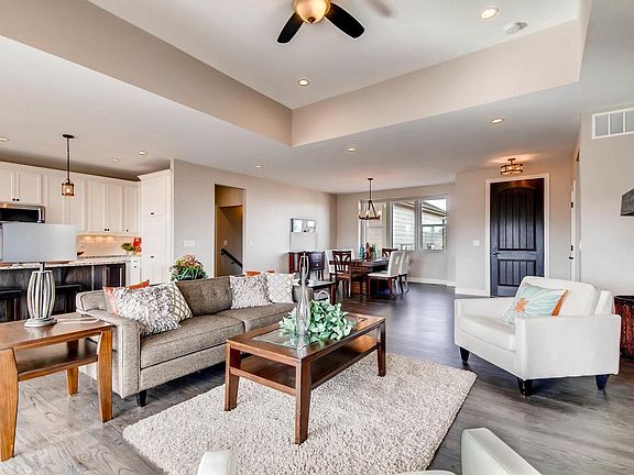 Brand new ranch home on 1.57 acres with gorgeous mountain views! Open concept floor plan with spacious great room and stone fireplace, gourmet kitchen boasts upgraded self-closing cabinets and sliding drawers, slab granite, kitchen island, stainless steel appliances, dining room, kitchen nook, plenty of windows for natural light, master suite with barn door and walk-in closet, five-piece master bath with tile plank floors, sizable glass shower, and soaking tub, all bedrooms have ceiling fans and walk-in closets, hardwood floors with custom stain, finished basement, oversized 3 car garage, large composite deck, A/C, high efficiency furnace, low-E windows, Parker address with Elbert County taxes, close to town and quick commute to DIA, Elizabeth, and Southlands area. Best priced new build you will find!