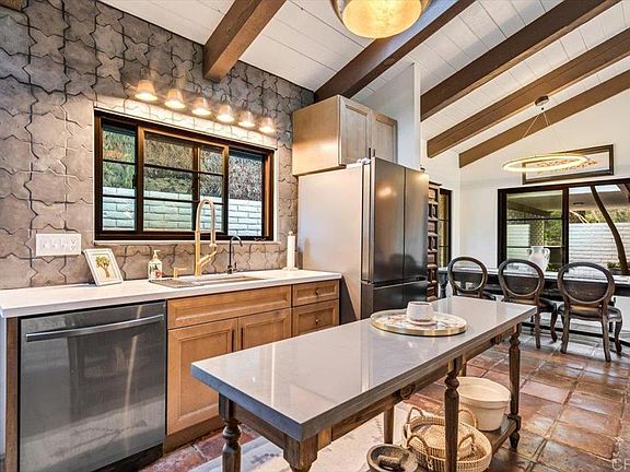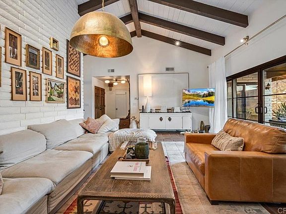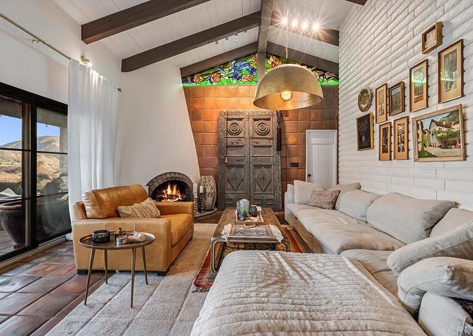 Perched atop the serene hills of the Singing Hills community, this eclectic, designer’s dream residence offers breathtaking panoramic views and a tranquil setting surrounded by natural, low-maintenance landscaping. This one-of-a-kind home features two spacious primary bedrooms and two bathrooms, ideal for both privacy and comfort. Step into a gourmet kitchen thoughtfully remodeled with Belgian Cle tile, custom finishes, and stylish touches that reflect artistic flair. Throughout the home, you’ll find a beautiful blend of bamboo flooring and Saltillo tile, Andersen dual-paned windows, and beamed high ceilings that enhance the home's warmth and architectural charm. The old-world fireplace in the living room adds character and a cozy focal point, perfect for relaxing evenings. The outdoor patio boasts panoramic mountain views and breathtaking sunsets, creating an ideal backdrop for peaceful mornings and unforgettable evenings. A true retreat, this property offers a unique combination of style, serenity, and timeless craftsmanship!!