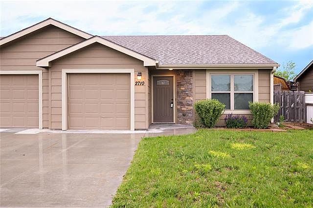 Cozy duplex with open floor plan! East side location with access to everything! Spacious living, dining and kitchen areas!Vaulted ceilings, wood flooring, kitchen island and access to patio! Two great sized bedrooms, both with attached fullbathrooms! Choose your master suite! Backyard has shared fencing. Attached single car garage with space for storage too!