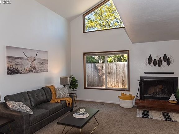 This 1543 sq ft, 3/2 townhouse-style condo is located in the coveted Ferry Street Bridge Area of Eugene, close to Autzen Stadium, Eugene Country Club, Oakway Shopping Center, the Willamette Riverbank Trail & More! Fresh paint, new carpet, new closet doors, newer vinyl windows, & recently replaced roof. Spacious floor plan w/high ceilings, large windows & a cozy fireplace in the living room. One bedroom & full bath on the main level. Remaining bedrooms, bath and laundry upstairs. Appliances stay!