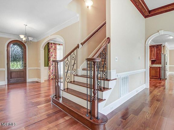 Absolute luxury! This 4,291 sq/ft, 5 bedroom/3.5 bath home has everything! As soon as you step into the grand foyer you can tell this home has spared no detail! Arched doorways will guide you into the beautiful family room which boasts coffered ceiling, stone fireplace, and impressive floor to ceiling windows...providing ample light and view of the large patio and professionally landscaped backyard. The kitchen is an entertainer's dream with eat-in space, massive island, quiet sitting area w/ its own fireplace, double ovens, and glass doors leading to both the covered porch and the elevated patio...you must see it to believe it! Plus, for more formal events there is a grand dining room with beautiful arched doorways and high ceilings. Tired of entertaining?...The huge master suite provides an oasis of relaxation and quiet. Enjoy a double tray ceiling, spa like bath, and massive room-sized closet. The downstairs is completed by a guest bedroom, a half bath, a mudroom w/ built in benches and storage, and an office nook...perfect for study or work. Walk up the grand staircase and you'll find three bedrooms (yes, three more)...all large with wonderful closet space. Time for some family fun...enjoy the an absolutely massive bonus room for movies, games, workouts, and more! A house like this needs a lot of storage and this home has it!...w/ storage galore in the huge walk-in floored attic space. Cleaning is a breeze too, with a central vacuum and laundry rooms on both floors. The best part to the home though is the beautiful grounds! The large, private lot is professionally landscaped, providing a serene, park-like setting...with space for relaxing and play. To complete your showing, take a relaxing stroll around this quiet and lovely neighborhood; filled with beautiful estates and wonderful neighbors! Simply perfect! ** Fresh paint and a price reduction...what more could you ask for? **