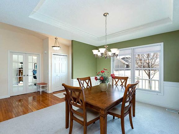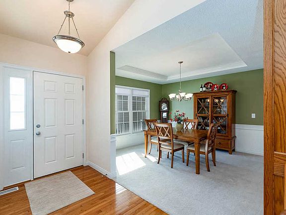 Jersey Meadows quality built 3 bedroom, 2 full bath ranch home with attached 3 car garage. Hardwood floors greet you at the foyer and lead into the bright kitchen and informal dining room. Spacious living room with vaulted ceilings and gas fireplace is open to the formal dining room adorned with a tray ceiling and crown molding. The open staircase leads to the basement ready for finishing with a 3/4 bathroom rough-in and two egress windows. Master bathroom features a tray ceiling, walk-in closet and master bathroom with large whirlpool tub. Third bedroom can also be used as a den with double French doors. Large fenced backyard with several trees and a patio with pergola. Main level laundry. One year AHS Warranty and kitchen appliances included. Conveniently located in east Davenport near restaurants, shopping and more!