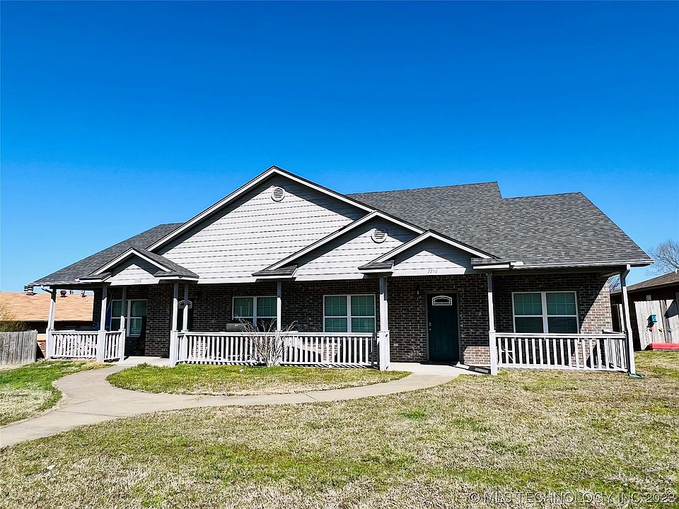 FABULOUS investment or home-ownership opportunity!! Wonderful DUPLEX conveniently located close to all that Muskogee has to offer. CONSTRUCTED IN 2013, both sides of the duplex have 2 bedrooms and 2 bathrooms plus SPACIOUS living room, laundry room, kitchen with eating area plus a 2 CAR ATTACHED GARAGE! Enjoy the nice COVERED FRONT porches! Kitchen has granite, refrigerator, microwave, stove/oven and stainless-steel sink. 2-inch wood blinds. Nice long driveway with garages in the back and patio areas. 2708 leased for $850/mo through August 2023. 2710 just vacated on April 20. LIVE IN ONE SIDE AND CONTINUE TO RENT 2708! PUT THIS ONE ON YOUR LIST TO SEE TODAY