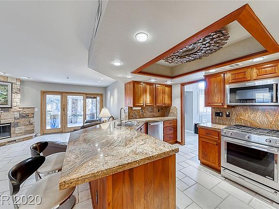The ultimate "STAYCATION" home! Imagine lounging near a MAGNIFICENT POOL, barbecuing under a COVERED PATIO, surrounded by PALM TREES in a completely SECLUDED ENVIRONMENT! Including a DOWNSTAIRS BEDROOM w. full bath, FORMAL DINING, tile throughout, NEW CARPET in bedrooms, MARBLE countertops, STAINLESS STEEL appliances, CHEFS STOVE, cozy living room w. FIREPLACE, & NEWER A/C. Nestled in the quaint area of Green Valley full of family fun! Must See!