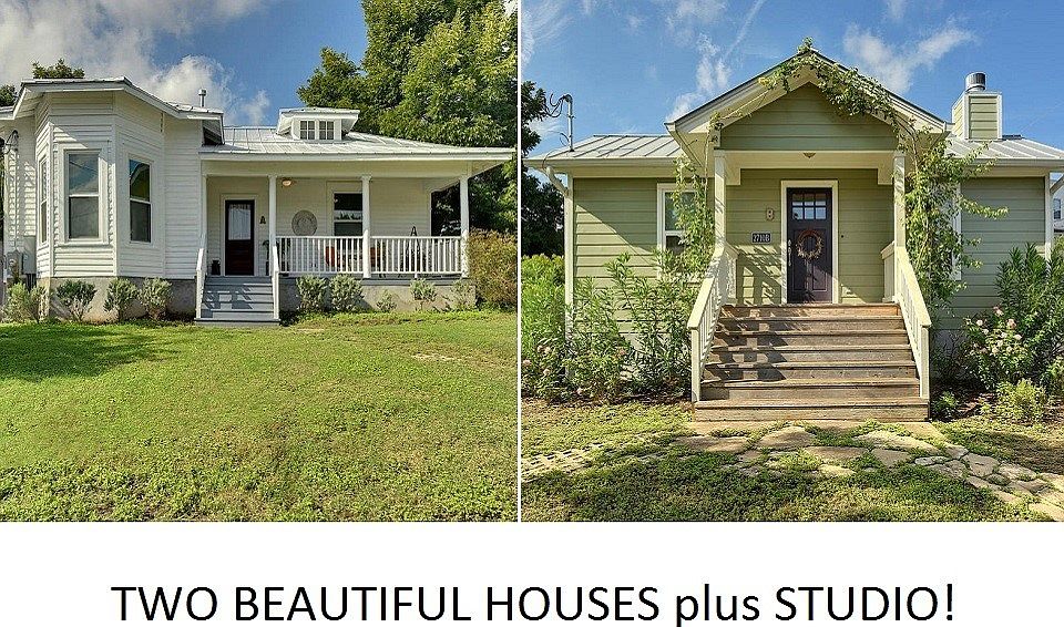 TWO Homes + a workshop/studio on 3/4 acre / completely fenced back yard. SF combines both homes + there's an add'l 680SF workshop/studio. Unit A is charming 1925 farm house, 2/2+nursery/office, remodeled. Unit B is 2/2+nursery/office, handicap accessible. Easy freeway access to all areas of Austin. Mature fruit/pecan trees, garden areas, drought tolerant landscape. Automatic gates and separate drives for both homes. Covered decks with fans overlooking courtyard ~ Great entertainment area. Call agent to schedule an appointment or to get more info! TAMBLE REALTY, LLC ~ Sheila Tamble, Broker ~ 512.567.3635