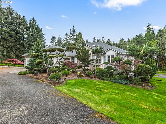A beautifully etched glass arched doorway welcomes you into this stately and elegant 4,366 square foot home. The arched theme continues in the airy and spacious skylit entry. High ceilings throughout the main level - including the large open kitchen with slab granite upgrades. The expansive main floor primary bedroom is just one of two primary suites, with the second one being in the daylight basement living quarters. So much living flexibility with the extra kitchen and utility room. On the very nicely landscaped grounds, there is a massive 1,752 sqft shop and large storage building. And that's in addition to the 750 sqft attached 3 car garage. Notice floor plan in pictures.