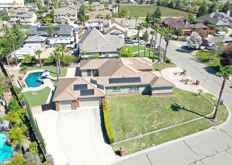 Introducing an exceptional and rare One-story home that you've been waiting for! Situated on a spacious corner lot, boasting over 19,000 sq. ft., this 4 Bedroom, 3 Bathroom home with over 3,700 sq. ft. on one story, offers a gorgeous and sprawling backyard paradise with a California Room (covered patio) and a beautiful pool and spa. There is an elegant circular driveway, as well as a separate driveway leading into a 4 car garage, with a finished room for projects, and more! Inside, you'll love the separate office so masterfully designed, and can I say, "belly up to the bar", because there is one, in it's own separate area off the GRAND open family/great room! There's something for everyone, including a dining ROOM, separate living room, and gorgeous entry doors!
