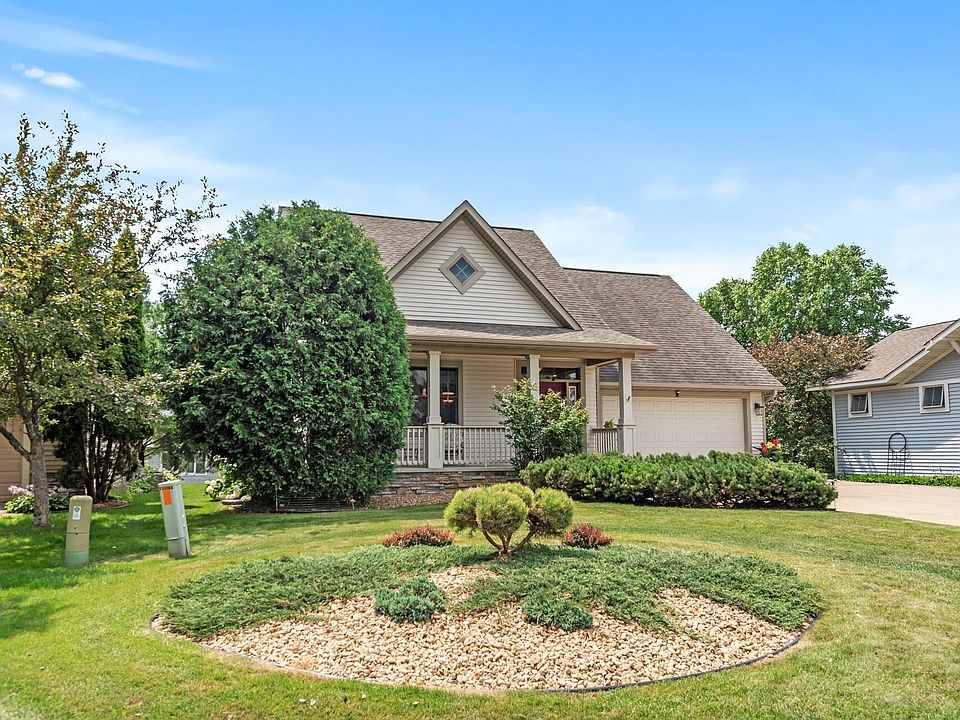 Welcome home to this lovely rambler that offers a single-level living experience and has been meticulously maintained. The main level has a kitchen that boasts granite countertops, custom cabinetry, under-cabinet lighting, stainless steel appliances, and breakfast bar. The primary suite includes a private bathroom with dual sinks, tiled floor, a separate tub and shower. It also comes with a walk-in closet with natural light. On this level you will also find an inviting living room with a cozy gas fireplace, an office with custom-built-in cabinets, a sunroom perfect for relaxation, half bath, as well as a separate laundry room. The lower-level features lookout windows, high ceilings, two bedrooms, a full bathroom, a spacious family room, and a large storage room with shelving. The property is located on a quiet cul-de-sac and showcases a beautifully manicured lawn, a front porch, and a concrete driveway. It’s conveniently close to freeway access, shopping, restaurants and more!