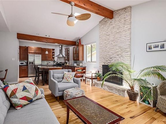 Premier Allandale location! Mid century modern feel! This stunning house features immaculate landscaping w/mature front tree, custom double front doors, stacked stone exterior, new contemporary bathrooms w/frameless glass & custom cabinets, newer designer flooring, high beamed ceilings, newer kitchen w/stainless appliances, tons of natural light, HVAC (2017), custom built-ins, stone fireplace, newer back patio, raised planting beds, and so much more! This home has "pride of ownership" written all over it!