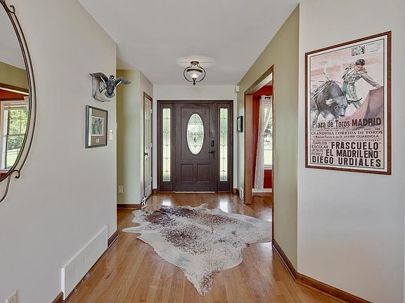 Situated on 2.58 acres and just min from everything! Offering 3 bd 2.5 baths w/ separate office all on one level. Split floor-plan w/ real hardwood floors & smooth ceilings. Oversized gourmet kitchen w/ granite island, double ovens & custom cabinets. Laundry room has 1/2 bath, lots of cabinet space w/ sink & space for an extra refrigerator. Office area offers views of the back yard retreat, with a sink & direct access to the back deck. Oversized 28x24 garage. 40x25 barn w/ stall & tack room.