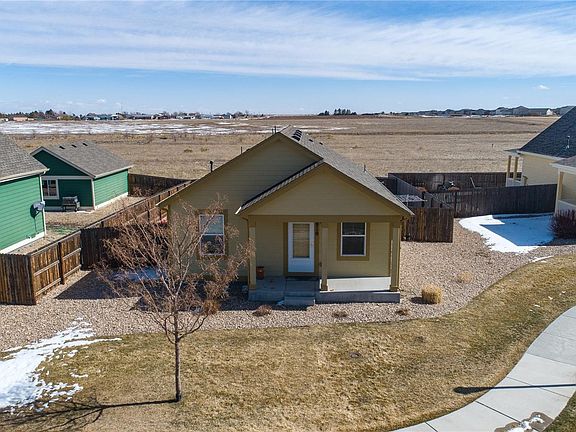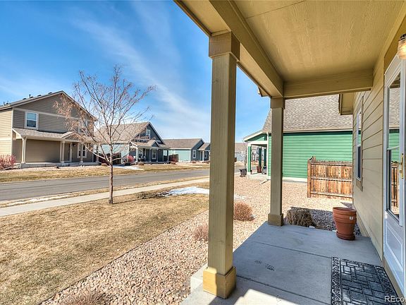 Wonderful starter home at a great price! Newer phase ranch style home located in Strasburg's Wolf Creek Run with easy access to I-70, King Soopers in Bennett, and the Denver Metro area. Three bedroom, two bath home with fully fenced professionally landscaped backyard, 16 x 17 concrete patio, and open space behind the home. Master suite with full bath and walk in closet. Two additional bedrooms and full bath. Refrigerator, gas stove, and window blinds included. Tile granite countertops, pantry, and dining area near kitchen. HOA maintains front yard and neighborhood has a spacious park, playground, pavillion, and pool.