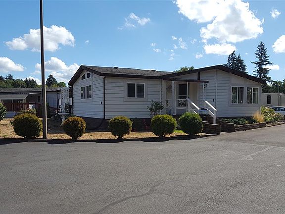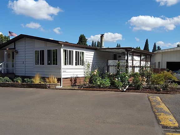 Accepted Offer with Contingencies. This Home has lots of room including 3 covered decks, Front 4'x8' back 9.5'x19' side 12'x16' all appx sizes. Senior Living Park Total square footage Appx 1692sf includes Tip out 12x24=288sf added to 27'x52'=1404sf double wide. Cathedral windows,vaulted ceilings, Utility room updated kitchen and floors thermal windows. Forced air AC/Heat pump installed around 2013-14. Park Rent $420 +$50 for garage includes 2 parking spaces in front of garage also.