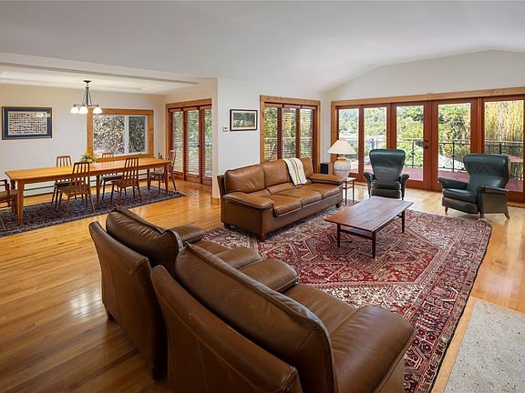 Rich wood detailing throughoutSecluded back patioOpen-concept layoutVaulted ceilingsHardwood floorsOversized windowsRibbon maple gourmet kitchen