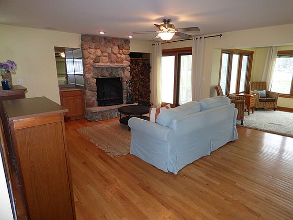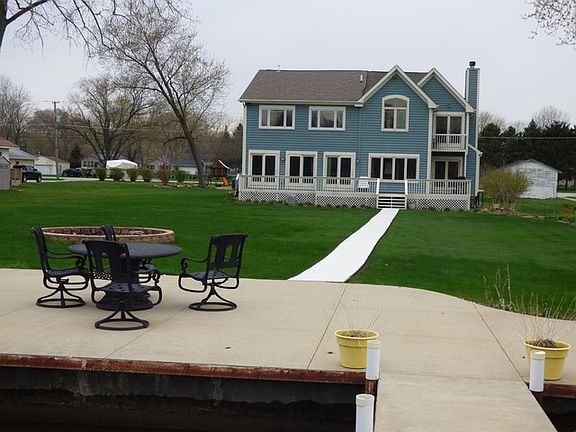 Just in Time for Summer! Beautiful 120 feet of Fox River Frontage. Views of the River from Almost Every Room. 3 Bedrooms, 2.5 Bath, First Floor Office, Huge Bonus Room, Plenty of Storage, W/B Fireplace, Large Master Suite with Bath Overlooking River, Hardwood on First Floor. Concrete Seawall & Piers, 12,000 # Shorestation Lift. Great Spot on the Fox River! 2 Car Garage. 2 Vacant Lots across Street Included