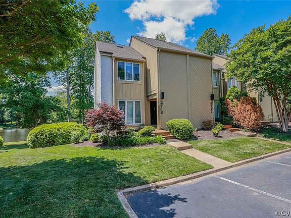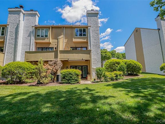 CHARMING PARKLIKE SETTING! BEAUTIFUL WATER-FRONT PROPERTY...100' TO SHORELINE! LAKE ACCESS! POOL! DEAD-END STREET! SPARKLING & INVITING 3-LEVEL HOME. RENOVATED IN LAST 1 - 3 YEARS--MOVE-IN READY! New tile entry with custom wainscoting welcomes you! Near 19'x16' Livingroom with brand new wood LVP floors/ FP/Balcony! NEW KITCHEN with SS Appliances, Cabinets, Corian counters, island, tile floors, & bar opening into Great Room! 2nd FL00R: 2 VAULTED, ENSUITE, PRIMARY BEDROOMS. All 3-1/2 baths have tile or LVP floors + new vanities/fixtures. LOWER LEVEL: FUN NEW REC ROOM with custom cabinetry, workshop, 3rd Bedroom, & NEW Full Bath...very pretty extended tile shower. Walk out to patio, parklike yard & lake! NEW INTERIOR PAINT & FLOORING! NEW ROOF (2020). NEW 2-ZONE HEAT PUMPS (2020). (Most townhomes have only 1.) 2 reserved parking places in front, plus lots of visitor parking. Community storage for your kayak/canoe nearby. Great schools. Short Pump 'action' & amenities are minutes away. Yet, there's lots of fun to be had in QUIET, PEACEFUL BAY COVE! BE SURE TO SEE CAPTIONS UNDER PICTURES PLUS VIRTUAL TOUR!