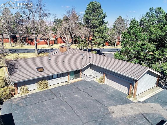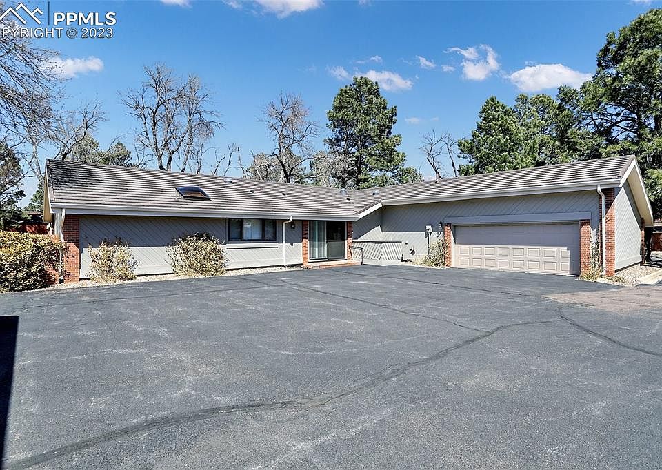 Experience the charm and elegance of this patio home, nestled in the highly sought-after Gated Community of Spring Grove. As you enter through the front door of this corner lot home, a grand foyer greets you, adorned with luminous tiling that sets the tone for the rest of this remarkable property. This inviting ranch style floor plan effortlessly leads you to the living room, completed with a warm and welcoming gas fireplace. The living room showcases impressive vaulted ceilings with lovely beams that evoke a sense of sophistication. A stylish wet bar and ample lighting add to the overall ambiance, while the sunroom offers access to the private patio providing an ideal space for relaxation and rejuvenation. Step into the dining area, seamlessly connected to a well-appointed kitchen featuring sleek granite countertops and cozy bar seating. This home also offers a versatile room that can be used as an office or an additional family space. Each room in the west wing offers access to either the charming sunroom or the patio that provides unmatched seclusion, creating an ideal setting to look at the breathtaking views of the picturesque mountains. The expansive primary bedroom features an adjoining bathroom, complete with a beautiful skylight over the tub with an added heating feature. The non-conforming room can serve as an excellent option for either an additional bedroom or a study. Indulge in the luxury of a heated garage that provides abundant closet space for all your storage needs. There is a superb attached workshop room that awaits your creative touch, allowing you to transform it into whatever your heart desires. As an added bonus, luscious pear trees that bear fruit in the fall, providing you with a bountiful harvest to savor and enjoy! Conveniently located near The Broadmoor, shopping centers, Highway 115. The roof, skylights, garage door, and 4 sliders were all recently replaced. Come envision your future in this remarkable home.