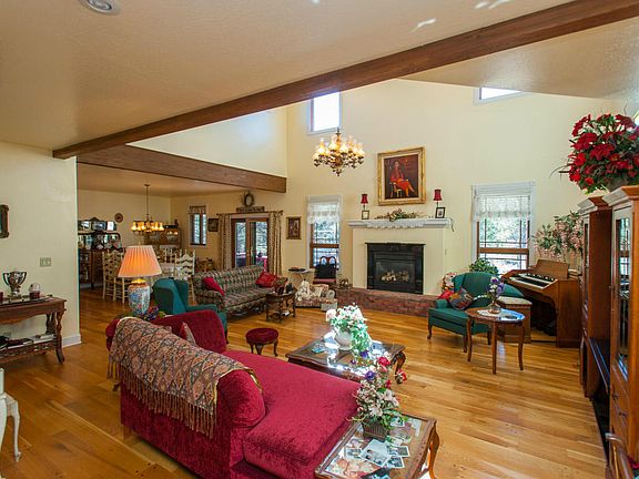 Rustic Elegance! This fabulous country home is full of cozy warmth and charm! Walk in and feel right at home with its custom country amenities. Lots of natural light from vaulted ceiling windows and skylights throughout. Upstairs loft opens to large great room with fireplace. Country kitchen has it all..space, storage, light and large breakfast bar. Large kitchen dining area included as well as a formal dining room. Situated on 2.41 acres, the backyard and full length covered patio provide lots of entertainment space, panoramic views and ponderosas!
