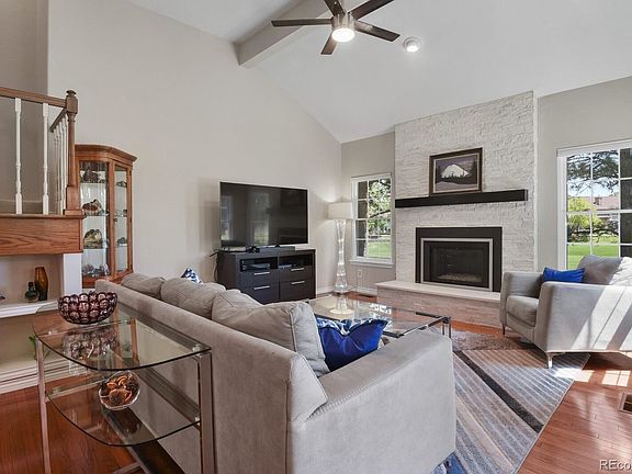 Pristine Riverwalk townhome perfectly located on the 5th fairway of Littleton Golf Course. This 2 story home truly lives like a ranch! There are 2 suites in this home the large primary suite on the main level with wood burning fireplace, huge closets, 5 piece bath & private patio on the golf course, and a secondary suite upstairs with its own full bath. Open, spacious floorplan with hardwood floors throughout the main level, newer windows and central air. Completely remodeled kitchen with contrasting quartz countertops, large island, sleek fingerprint-resistant GE Profile appliances, ample storage, and coffee bar. Golf course views from the living room, main floor guest bedroom, dining room and patio! Modern thermostat-controlled gas fireplace is the centerpiece of the vaulted living room. Finished basement with wet bar and tap, main floor laundry and attached 2 car garage. Easily accessible from anywhere in the Denver metro area, and within walking distance or a very short commute to Downtown Littleton, the Mary Carter Greenway Trail , RTD Light Rail Station, Aspen Grove, Breckenridge Brewery and Hudson Gardens. Community amenities include a clubhouse with banquet facilities, billiards room, fitness center, outdoor pool and spa.