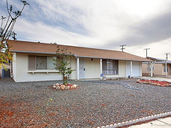 NICELY LOCATED SENIOR COMMUNITY IN SUN CITY. SINGLE STORY HOME WITH CUTE CURB APPEAL. EASY MAINTENANCE WATER WISE LANDSCAPING. ENTER INTO NICE SIZED OPEN LIVING ROOM WITH ARTISTIC FEEL. SELLER SELF PAINTED A REALISTIC LOOKING FIREPLACE COMPLETE WITH TILE & WOOD MANTLE. OPEN KITCHEN TO LIVING ROOM & EATING NOOK. KITCHEN HAS GRANITE ON CENTER ISLAND. TILE COUNTERS, STOVETOP RANGE, OVEN. TWO DECENT SIZED BEDROOMS ONE WITH DOORS LEADING TO BACK YARD. BATHROOM HAS BEEN REMODELED WITH A ROMAN STYLE TUB. FRENCH DOORS LEADING OUT TO LARGE BACK YARD WITH ATTACHED LAUNDRY/STORAGE ROOM, LARGE COVERED PATIO. SIT AND ENJOY THE NICE VIEWS OF THE SURROUNDING HILLS FROM THE BACK YARD. THERE IS A ONE CAR ATTACHED GARAGE AND ALSO A COVERED CARPORT.