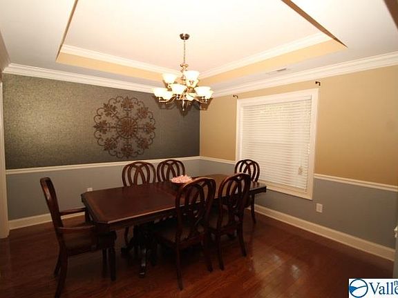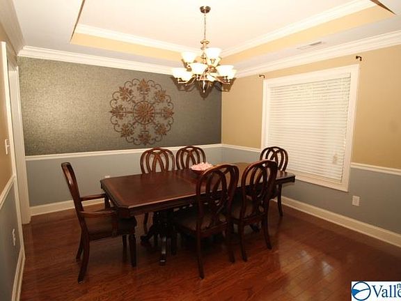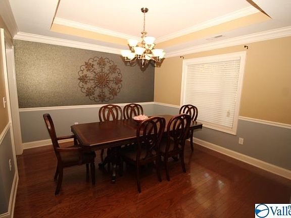 • RoomDiningRoomFeatures: Tray Ceiling(s), Chair Rail, Wood Floor, Smooth Ceiling, Crown Molding