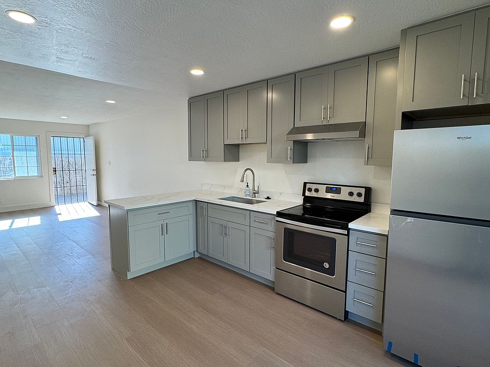 Discover modern living in this beautifully remodeled ground-floor 2-bedroom, 1-bath apartment. Everything is new. Enjoy an open and inviting floor plan featuring new hardwood-style flooring, LED lighting, updated kitchen with contemporary soft closing cabinets, beautiful quartz countertops and stainless-steel appliances, and a fully upgraded bathroom with modern tiles, quartz countertop.