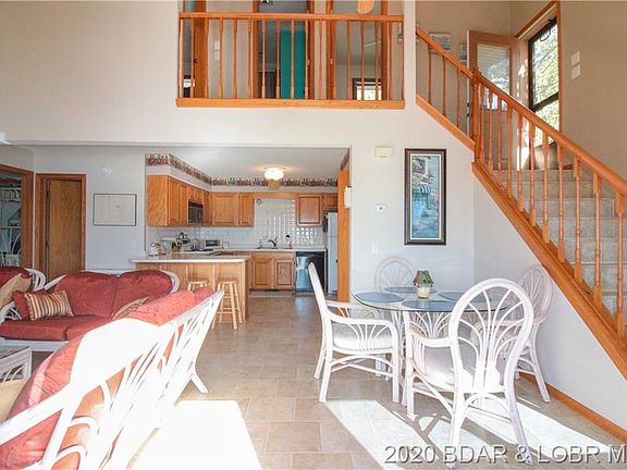 SUNSETS & STUNNING VIEWS. This home has BIG views of the Gravois Mile Marker #5. You will love the concrete & steel dock with a swim platform, 2 pwc lifts and a boat lift. Everything is already set up for you! This home is neat as a pin. Open the doors and enjoy the breezes and the sound of water hitting the shoreline & rumble of boats. There are multiple entertaining areas & plenty of parking. This is just across the lake from Coconuts and close to Jolly Rogers restaurant, too! This home has main level living and offers a second floor for your guests, and comes mostly furnished. This home is at the end of the street and offers a carport to keep your vehicle out of the elements. Per the seller, this home is scheduled to be on Phase 7 of the Rocky Mountain Sewer District* See this fine home TODAY!!