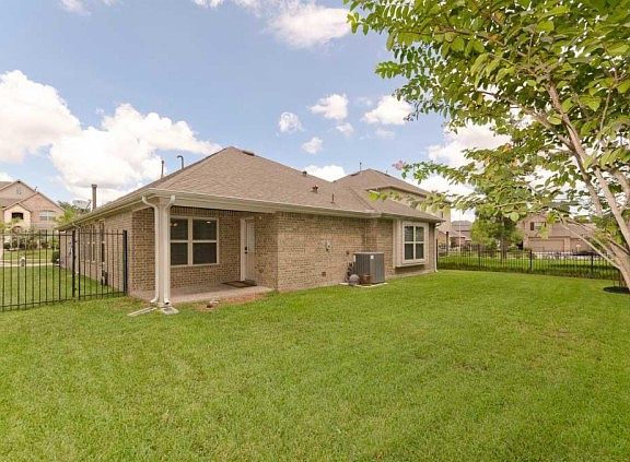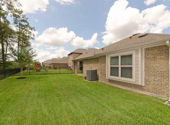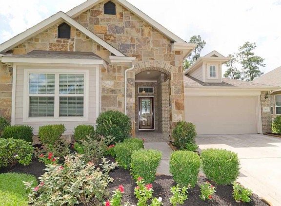Amazing one story that backs to TRUE GREENBELT on private cul-de-sac in MANNED GATED, master planned community minutes from Grand Parkway (currently under construction), Hardy Tollway, Exxon Campus, The Woodlands & more. Walking distance to community pool and park! Brand new HEB, shopping centers & new CISD elementary, intermediate & JR High right around the corner! Home features extensive hardwood floors, recent paint, open floor plan, island kitchen, covered back patio (overlooking grrenbelt)